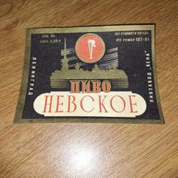 1961-1980Этикетка Пиво Невское Ленинград пивзавод Вена РТУ 1961 отклеена