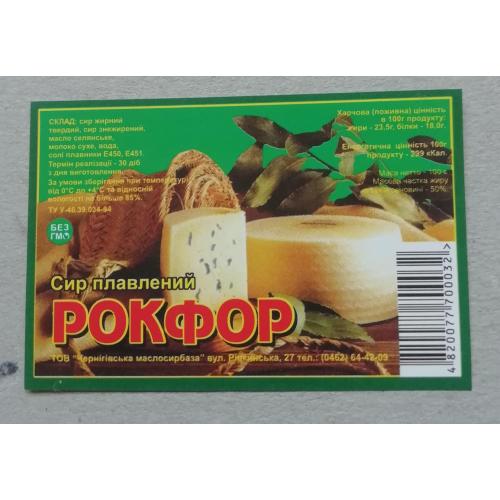 Этикетка - ПЛАВЛЕНЫЙ СИР РОКФОР