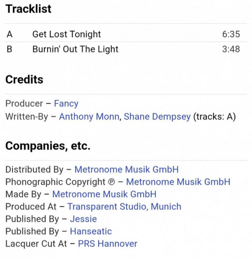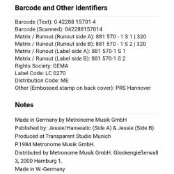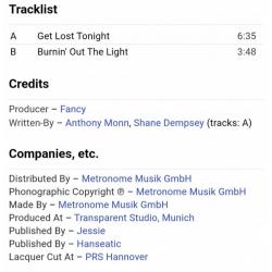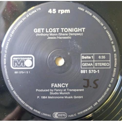 1981-2000Вінілова платівка. Третій, в дискографії, студійний максі сингл (EP 12), Німецького євро диско виконавця, Манфреда Алоїс Зегіта, більше відомого під сценічним ім,ям Fancy (Get Lost Tonight) 1984. Випуск фірми (Metronome) Germany, 1984-ий рік. Оригінальне, рідне, першопресове Німецьке видання. Стан платівки ЕХ. Стан конверту ЕХ. Відправка по Україні службами доставки: Нова Пошта, Укр Пошта, Делівері. Також відправляємо посилки за кордон по цілому світу.
