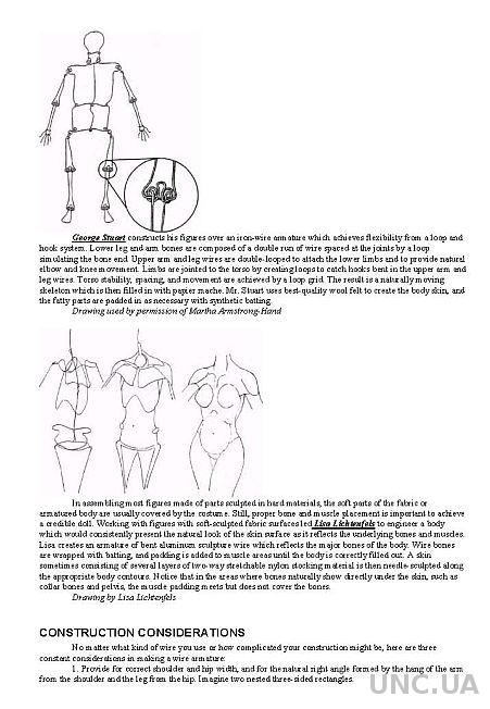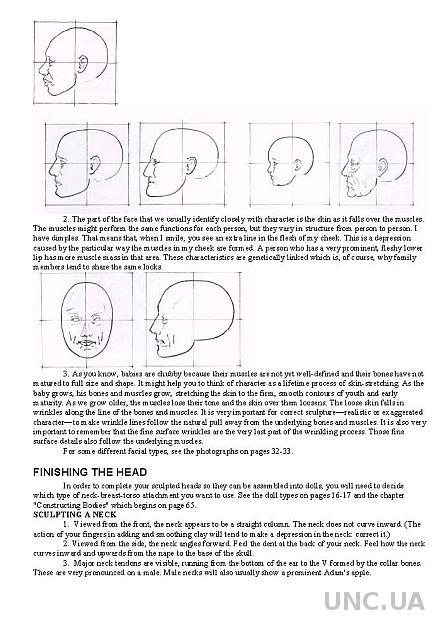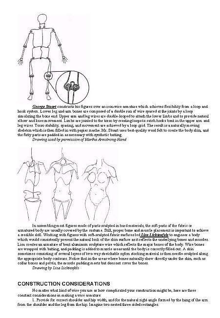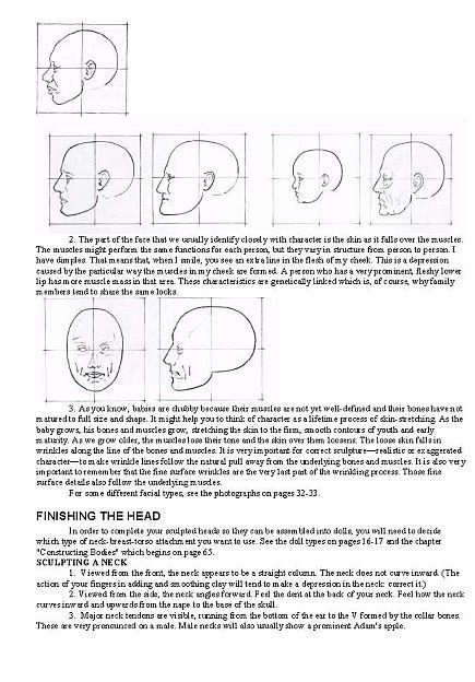 В двух центральных главах даются сведения по скульптуре головы и тела человека с одновременным рассмотрением технологии работы с различными полимерами, при этом особую ценность составляют уникальные методики по термообработке и времени запекания. Далее описывается окончательная отделка работ, в том числе покрытия воском, и основные способы изготовления проволочных каркасов, туловища, причёски, одежды, обуви и аксессуаров.