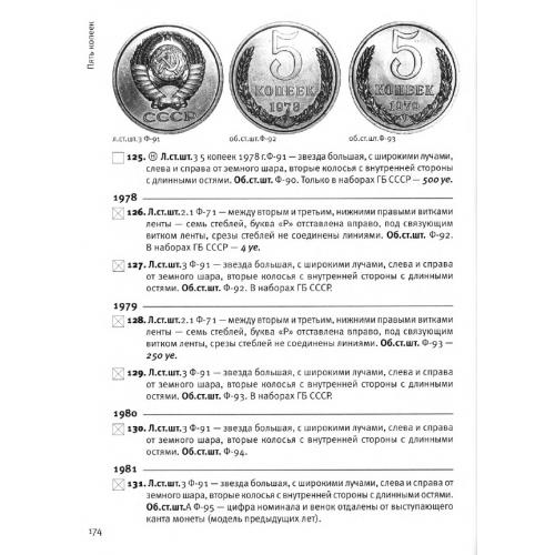 Описание: Настоящий каталог содержит подробные и полные сведения о советских монетах регулярного чекана 1921-1991 гг. и является практическим руководством для формирования частных и музейных собраний. В каталоге представлены сведения о рыночной стоимости монет в настоящее время. В приложении к основному каталогу представлены разделы: монеты Российской Федерации регулярного чекана 1992-1997 гг., иллюстрированный перечень пробных монет советского чекана, наиболее известные региональные металлические денежные знаки советского периода, эталоны для торговых автоматов, образцы и другие специальные жетоны, идентичные параметрам тиражных монет, монеты чеканенные «не в своем металле», каталог жетонов Народного Комиссариата внутренней торговли и Министерства торговли СССР. В заключение приведен каталог монетовидных жетонов Российской Федерации 1991-2015 гг. фирмы МастерВижн.