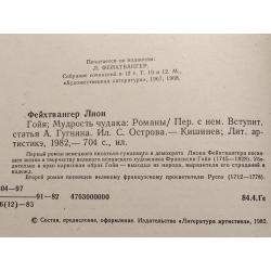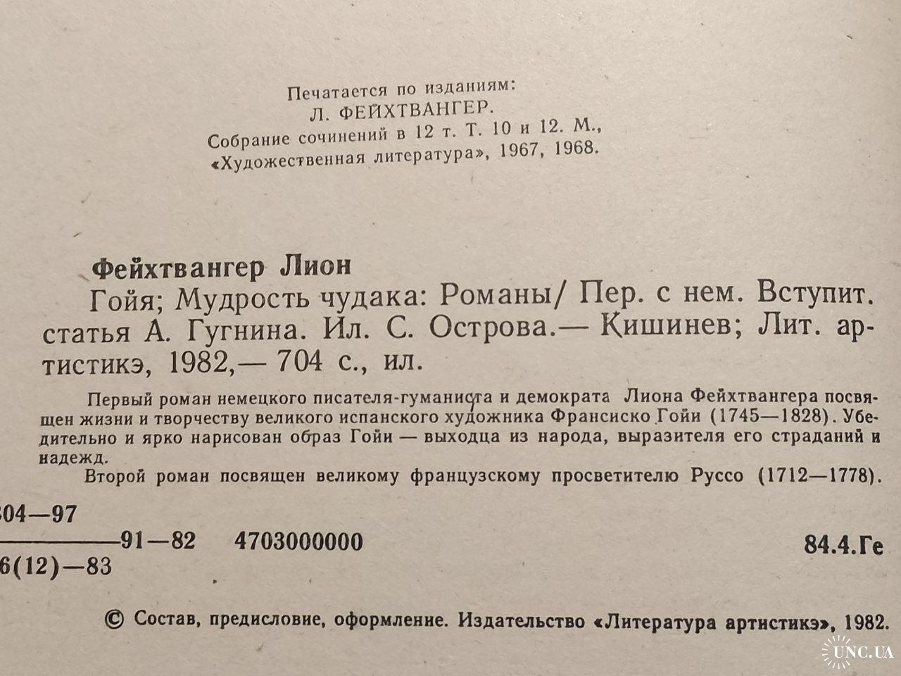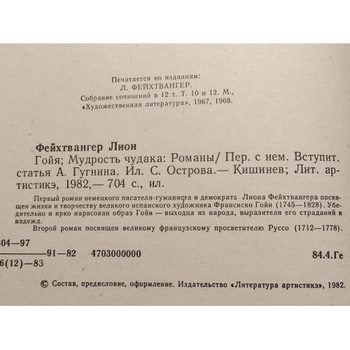 Фейхтвангер. Гойя. Мудрость чудака. Издательство: Кшн. Литература артистикэ. 1983 год. Ув формат. Отличное состояние. Из домашней библиотеки