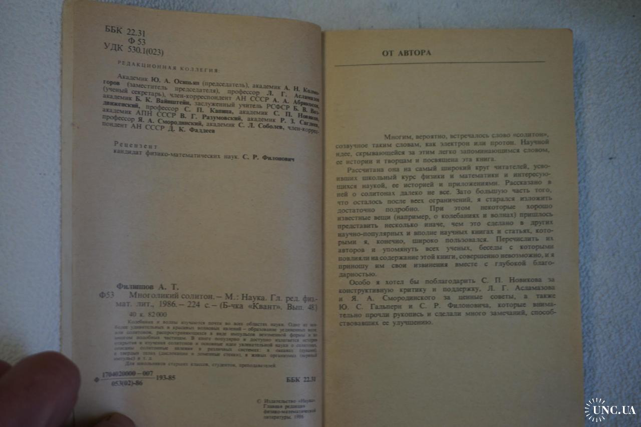 Одно из наиболее удивительных и красивых волновых явлений - образование уединенных волн, или солитонов, распространяющихся в виде импульсов неизменной формы и во многом подобных частицам. К солитонным явлениям относятся, например, волны цунами, нервные импульсы и др. Для школьников старших классов, студентов, преподавателей Оглавление: ИСТОРИЯ СОЛИТОНА. 150 лет назад. Большая уединенная волна Джона Скотта Рассела. Родственники солитона. НЕЛИНЕЙНЫЕ КОЛЕБАНИЯ И ВОЛНЫ. Портрет маятника. От маятников – к волнам и солитонам. НАСТОЯЩЕЕ И БУДУЩЕЕ СОЛИТОНОВ. Солитоны Френкеля. Второе рождение солитона. Приложения. Краткий именной указатель.