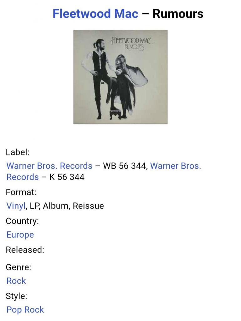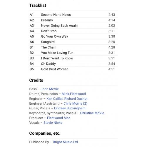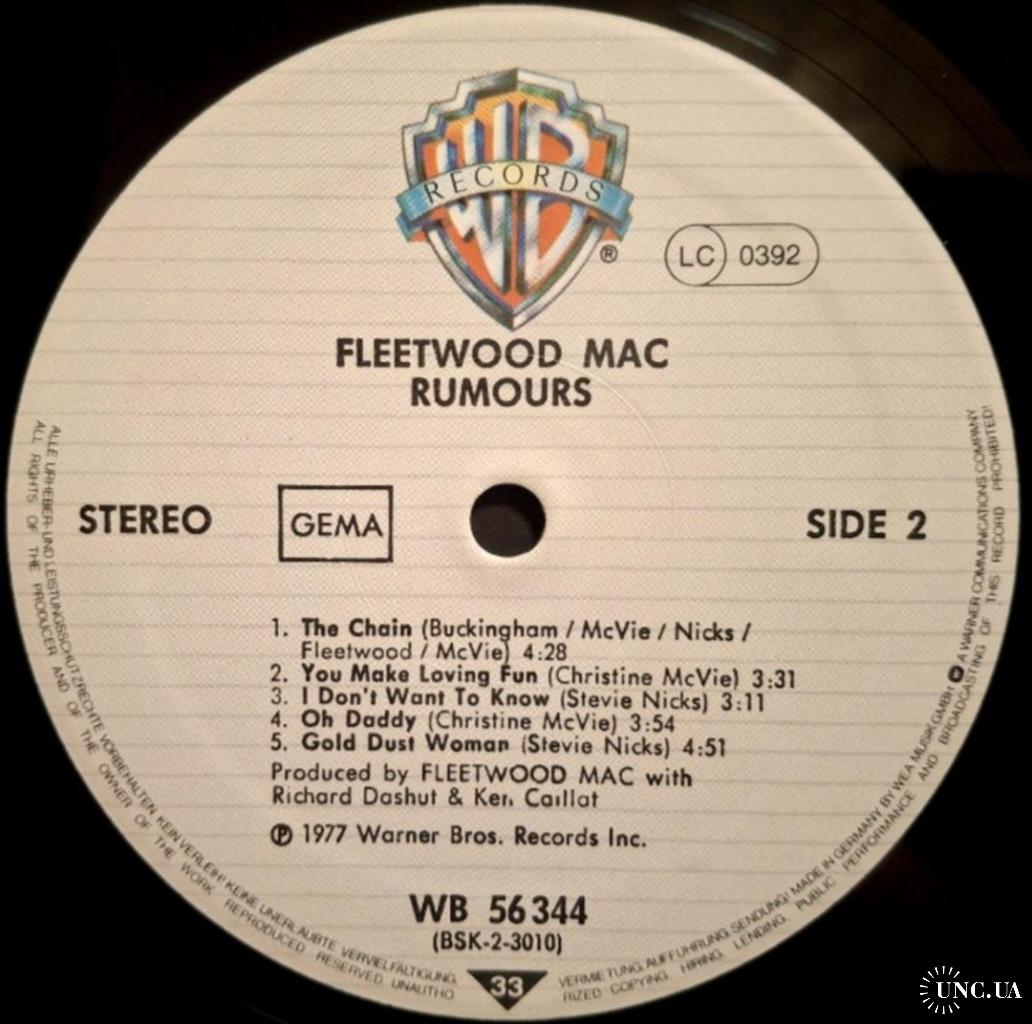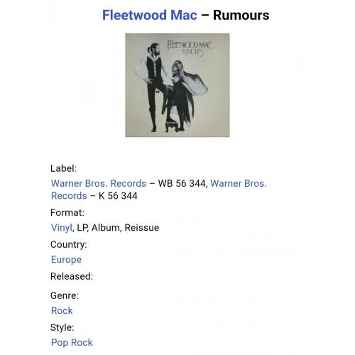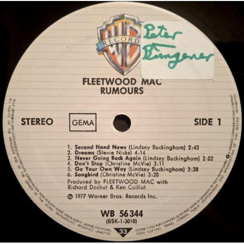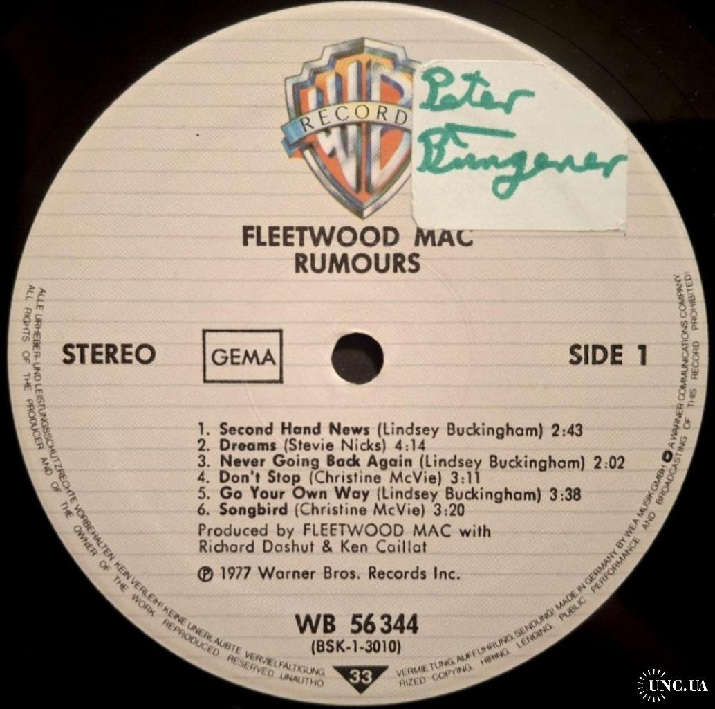 Вінілова платівка. Дванадцятий, в дискографії, студійний альбом Британсько-Американської поп-рок, блюз-рок групи Fleetwood Mac, до складу якої на той час входили Мік Флітвуд, Джон МакВі, Стіві Нікс, Ліндсі Бекінгем та Крістін МакВі (Rumours) 1977. Випуск фірми (Warner Bros. Records) Germany, 1977-ий рік. Оригінальне, Німецьке видання. Стан платівки NM-. Конверт глянцевий. Стан конверту EX+. В комплекті внутрішня двухстороння розворотна вставка-вкладиш (OIS). Відправка по Україні службами доставки: Нова Пошта, Укр Пошта, Делівері. Також відправляємо посилки за кордон по цілому світу.