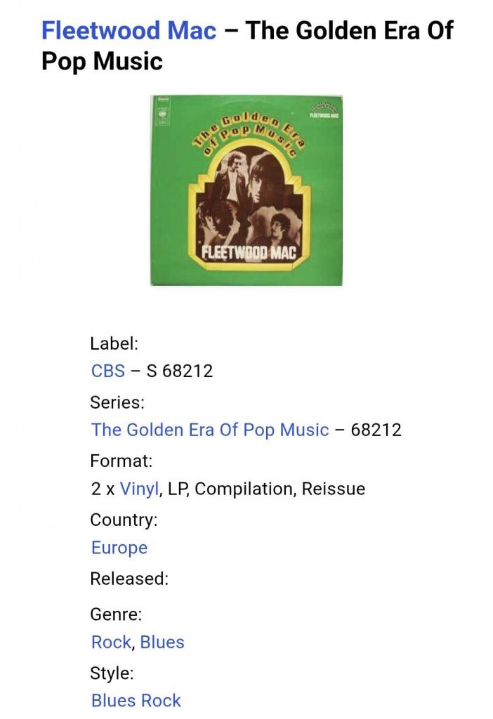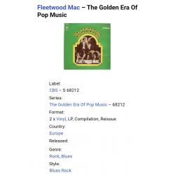 Вінілові платівки. Офіційна збірка найкращих ранніх хітів Британсько-Американської поп-рок, блюз-рок групи Fleetwood Mac, до складу якої на той час входили Мік Флітвуд, Джон МакВі, Пітер Грін, Джеремі Спенсер та Денні Кірван (The Golden Era Of Pop Music) 1968-72. Випуск фірми (CBS) Holland, 1972-ий рік. Видання з двох платівок (2LP). Стан платівок ЕХ+. Конверт розворотний (Gatefold). Стан конверту EX. Відправка по Україні службами доставки: Нова Пошта, Укр Пошта, Делівері. Також відправляємо посилки за кордон по цілому світу.