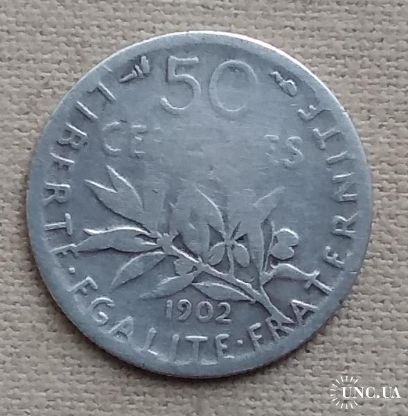 ОригиналФранция 50 сантимов, 1902 г, серебро