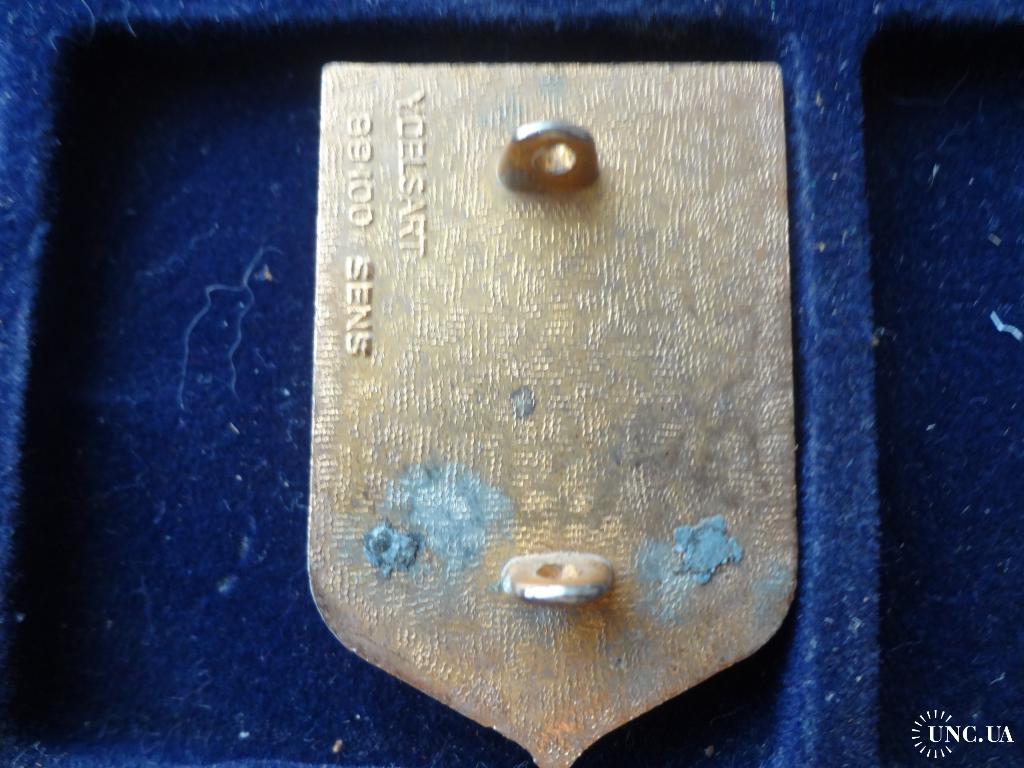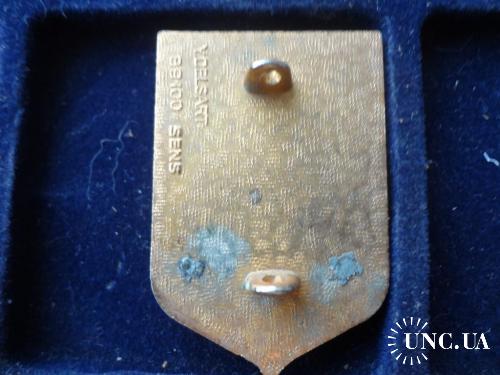 Материал и техника изготовления: бронза, эмаль, позолота, кожаная клипса. Накладное изображение герба и венка.