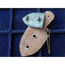 Материал и техника изготовления: бронза, эмаль, позолота, кожаная клипса.