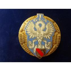 Знак 1° GLA: на небесном щите, пеликан из белой эмали и серебра, питает из своих недр трех своих детенышей, пеликан символизирует припасы, поступающие с неба. Разработан в 1950 году майором Бертином. Одобрено капитаном Тириета, командующего ротой с 1948 по 1955 год.