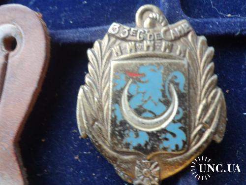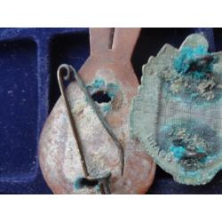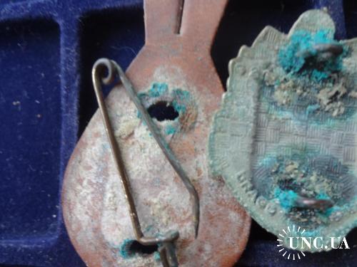 Материал и техника изготовления: бронза, эмаль, позолота, кожаная клипса.