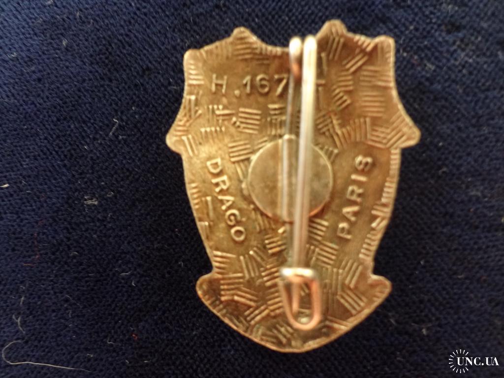 Первый значок был изготовлен в 1939 году Артусом Бертраном. Даты «1665» и «1936» выгравированы в нижней части значка, где мы также находим имя гравера: «Леклер». В 1947 году значок, изготовленный Артусом Бертраном, показывает дверь на бронированном автомобиле.