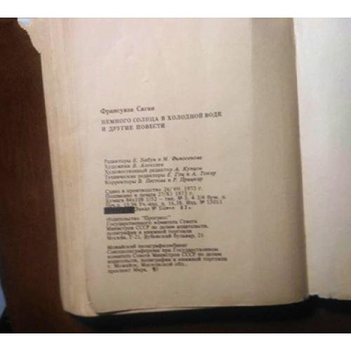 Франсуаза Саган. Немного солнца в холодной воде и другие повести. Изд.1975г., 304 стр