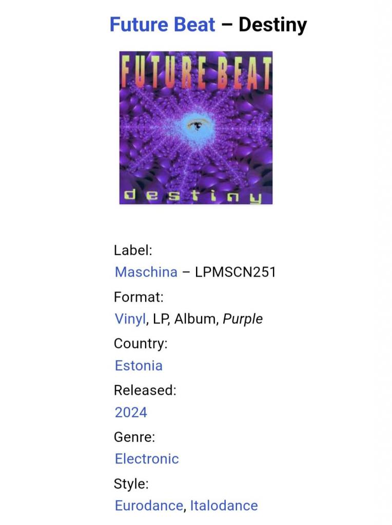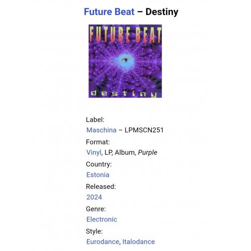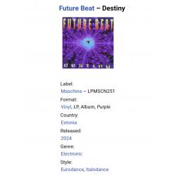1981-2000Вінілова платівка. Перший, дебютний, в дискографії, студійний альбом, Німецького євро денс виконавця Петера Бернарда Балвега і його проекту Future Beat (Destiny) 1994. Випуск фірми (Maschina) Estonia, 2024-ий рік. Кольоровий вініл (Coloured Vinyl). Лімітований тираж (Limited Edition). Видання нове, запаковане. Категорія S/S. Відправка по Україні службами доставки: Нова Пошта, Укр Пошта, Делівері. Також відправляємо посилки за кордон по цілому світу.