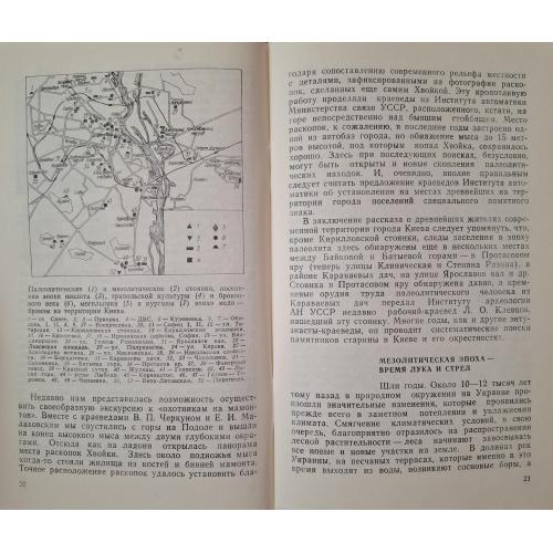 По новейшим данным, Киев возник 1500 лет назад. Но что было здесь на киевских холмах раньше? Ведь археологическими исследованиями установлено, что современная территория Киева начала заселяться человеком еще около 20 тыс. лет назад. О первых на территории современного города жилья, сделаны... из костей и бивней мамонта, о первых охотниках и рыболовах каменного возраста, древнейших в Поднепровью земледелцев и сковородов эпохи меди - бронзы рассказывает...