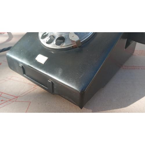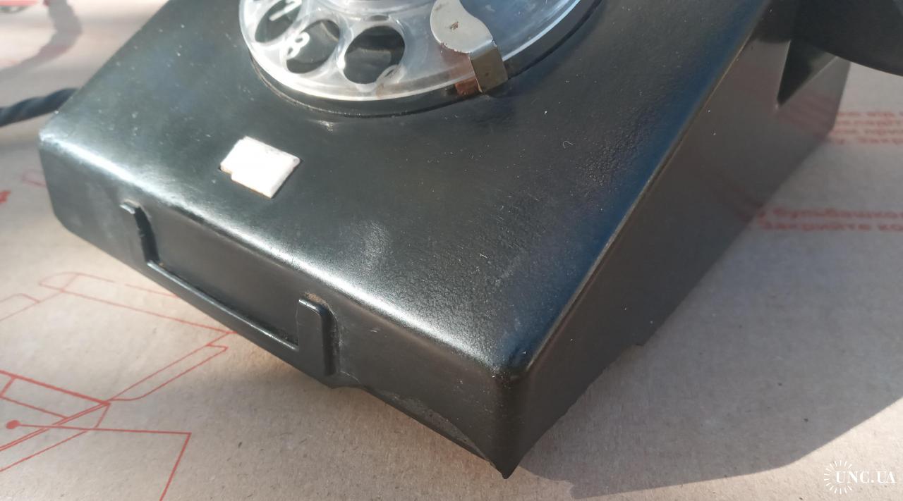 Состояние на фото,Б/У,хорошое, корпус имеет сколы впереди и справа на углу, трубка в отличном состоянии без сколов и повреждений,оригинальный дисковый номеронабиратель,из недостатков - отсутствие вилки подключения к телефонной сети,следы времени.