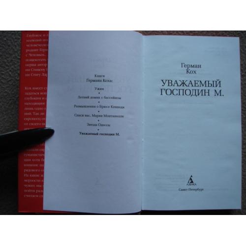 В новом романе «Уважаемый господин М,» Герман Кох с характерным блеском и безжалостным вниманием к деталям исследует свои привычные темы: любовь и дружба, ревность и зависть. Итак, познакомьтесь с господином М. Он знаменитый в прошлом писатель.