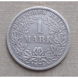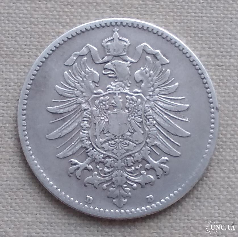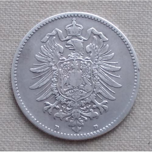 ОригиналГермания 1 марка, 1874 г, "D" - Мюнхен, серебро