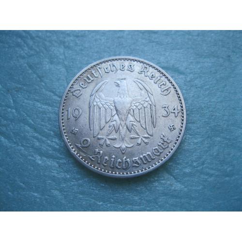 ОригиналГЕРМАНИЯ.2 Марки 1934 г А Кирха с датой 1933 г. ТРЕТИЙ РЕЙХ. СЕРЕБРО. У монеты красивый гурт. Хороший сохран.Состояние по фото.