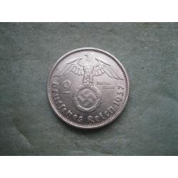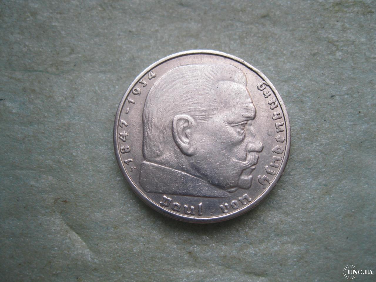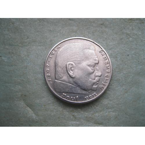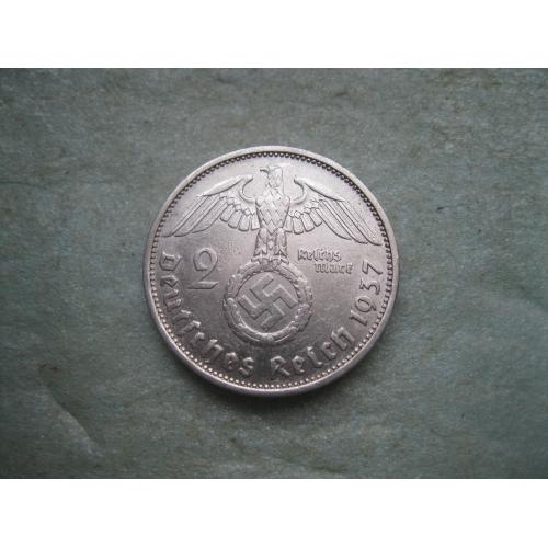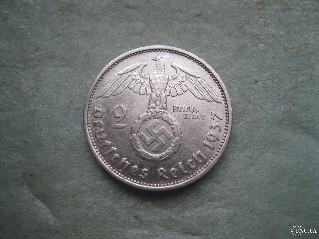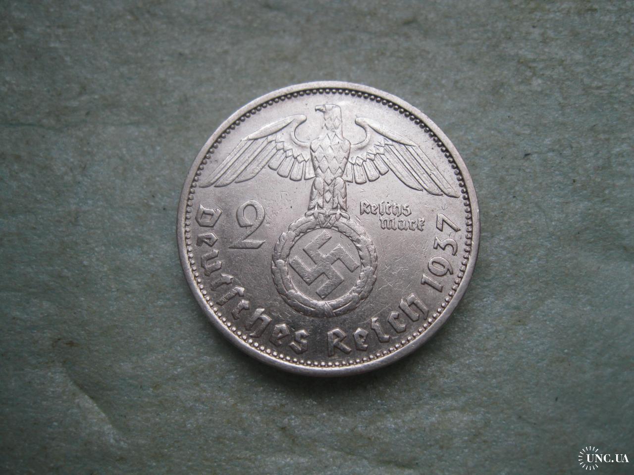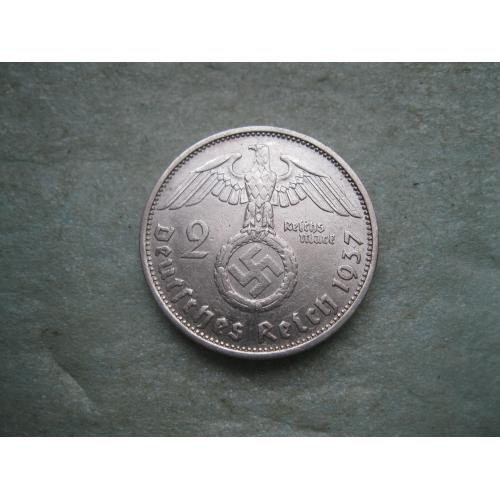 ОригиналГЕРМАНИЯ.2 Марки 1937 г Е, Гинденбург ТРЕТИЙ РЕЙХ. СЕРЕБРО.,Состояние ! У монеты красивый гурт. .Состояние по фото