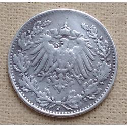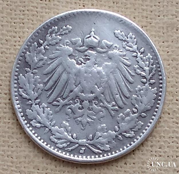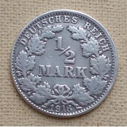 ОригиналГермания ½ марки, 1918 г, "J" - Гамбург, серебро