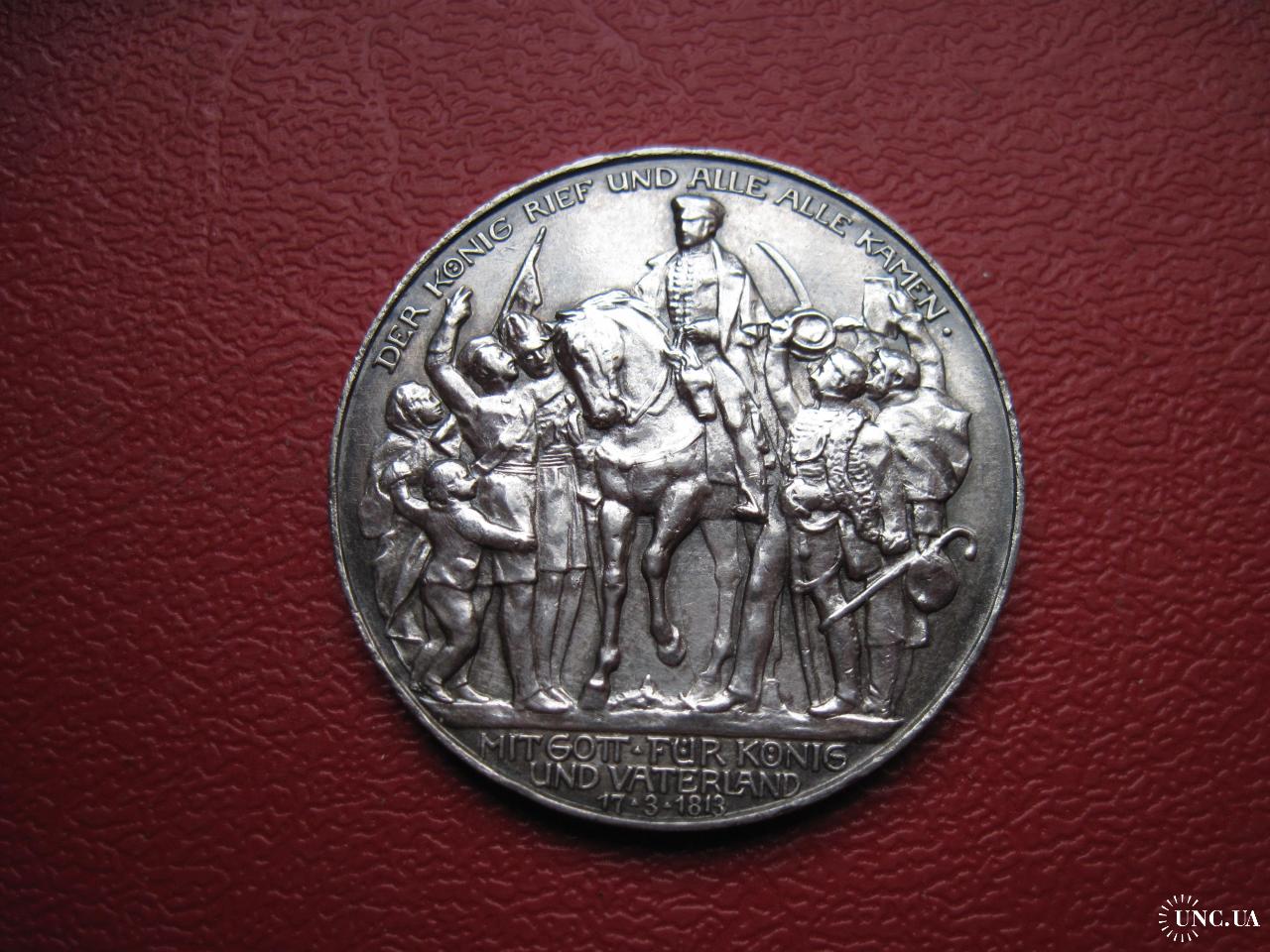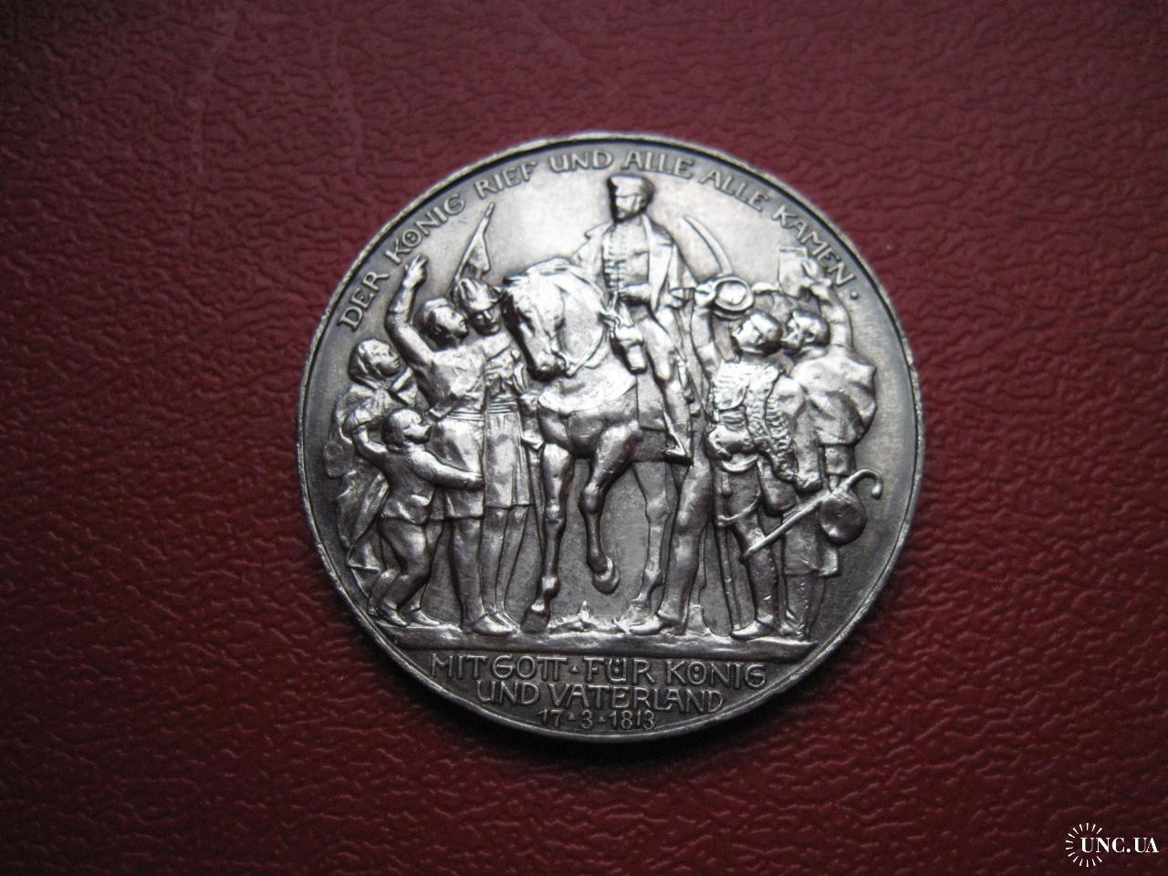 ОригиналГермания. Пруссия.. 3 марки 1913.г. 100 лет победы над Наполеоном. Серебро. Оригинал.Яваных следов обращения на монете не видно.Оригинал.Фото сделаны с большим увеличением, У монеты красивый гурт.. На оккупированные территории не отправляю