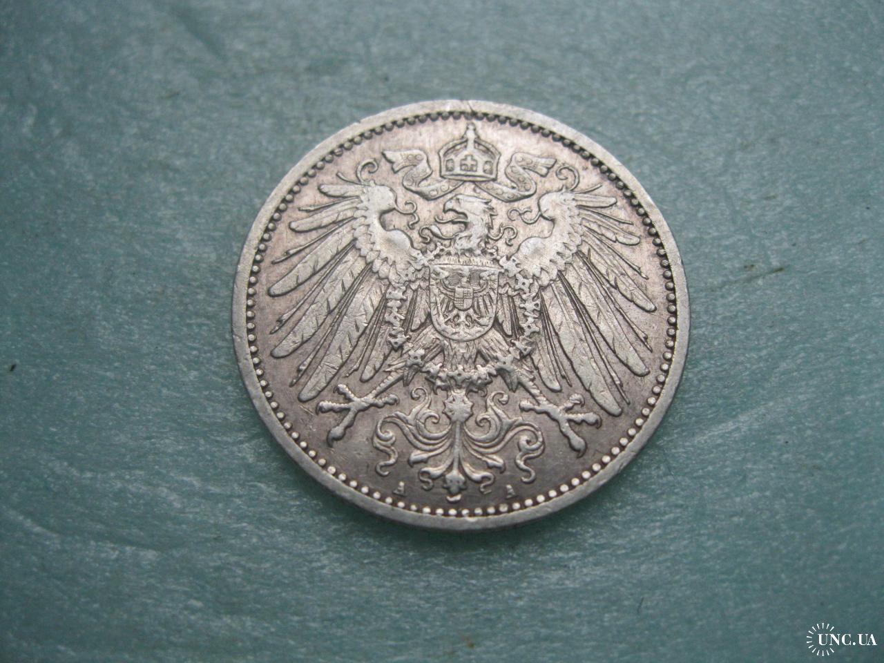 ОригиналГерманская империя 1 марка Серебро. Оригинал. Отличный сохран. Состояние по фото