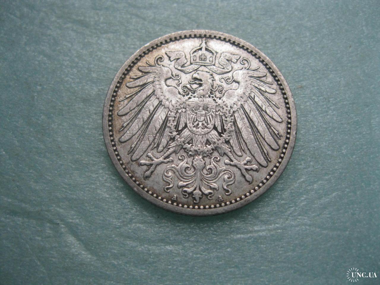 ОригиналГерманская империя 1 марка Серебро. Оригинал. Отличный сохран. Состояние по фото
