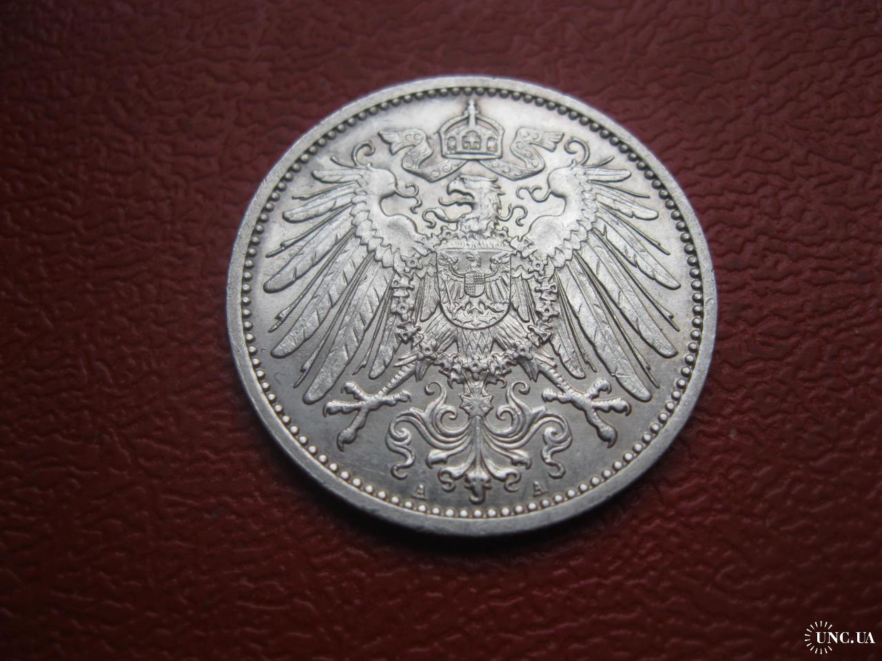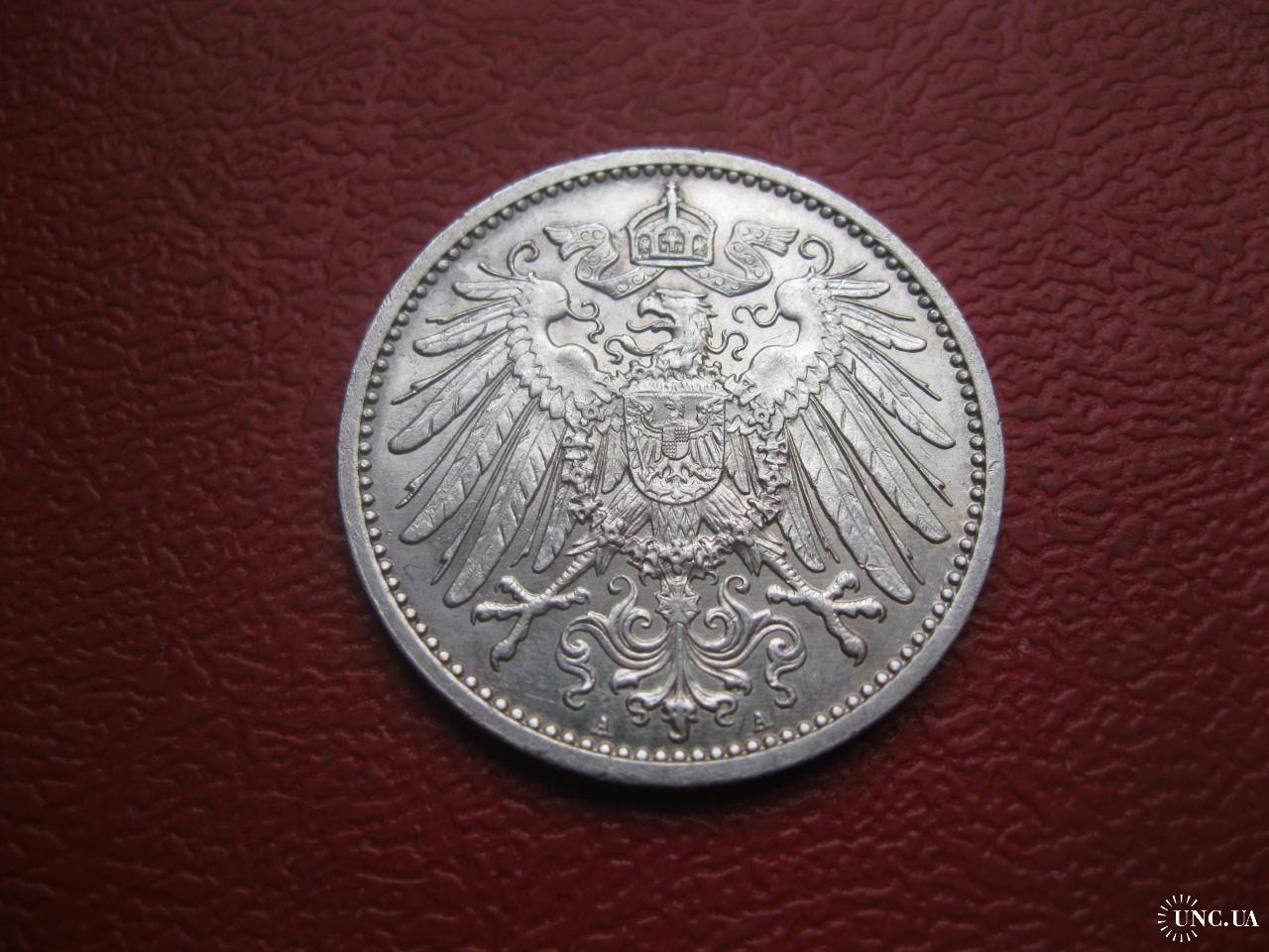 ОригиналГерманская империя 1 марка Серебро. Оригинал. Отличный сохран. Состояние по фото