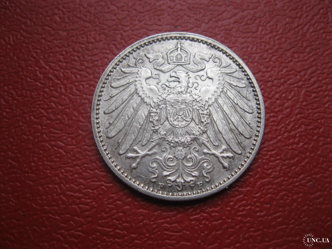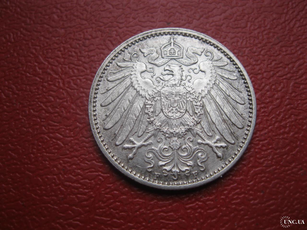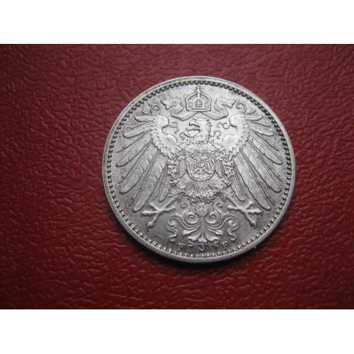 ОригиналГерманская империя 1 марка 1910 г. Монетный двор F. Серебро. Оригинал. Отличный сохран..XF-UNC . Состояние по фото