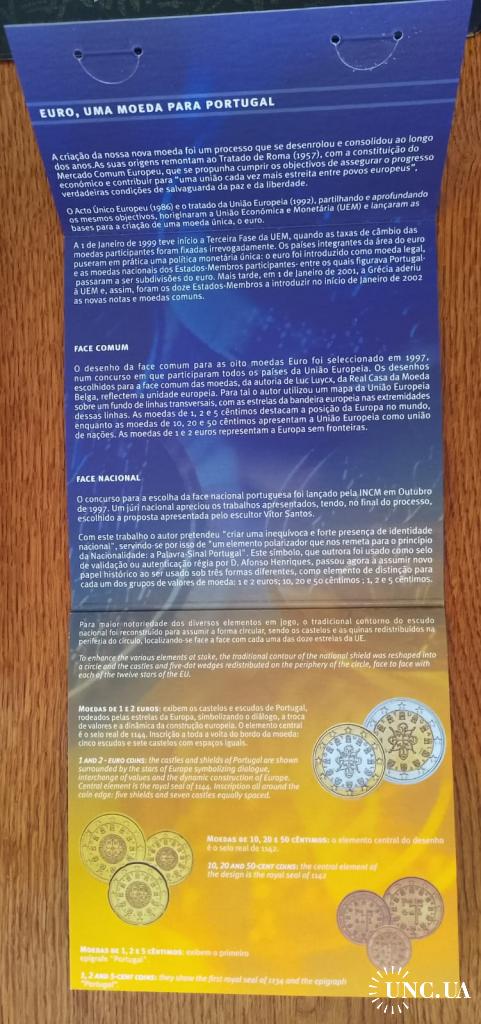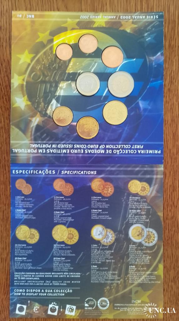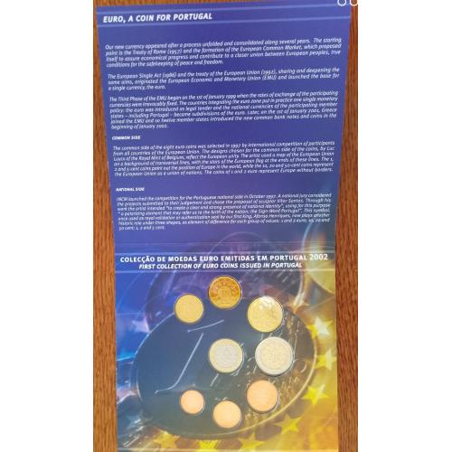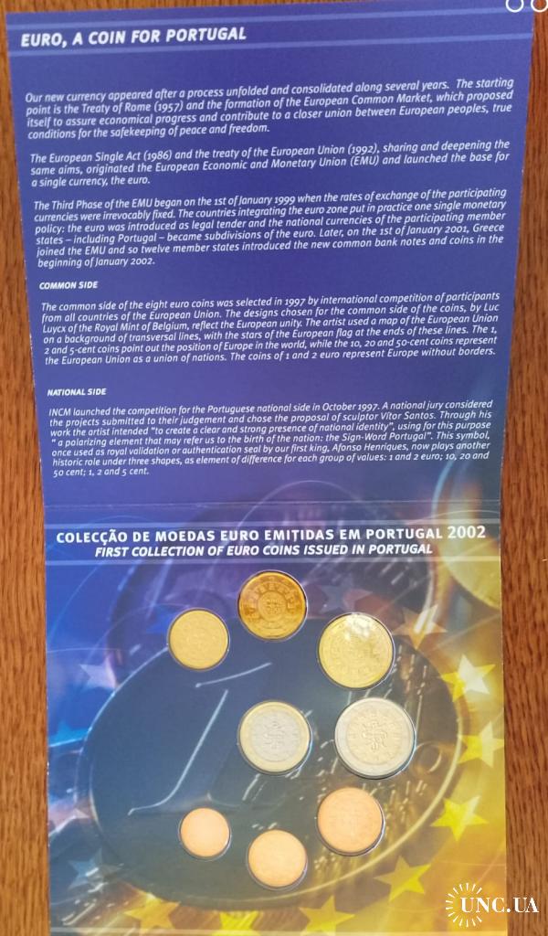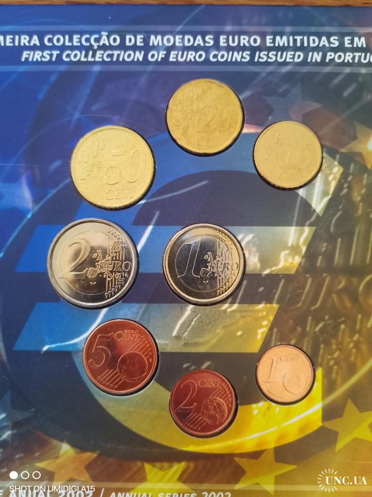 Предлагаю годовой набор обиходных монет евро Португалии в оригинальной полиграфической упаковке. Набор премичателен годом выпуска 2002, а именно год ввода евро на территории Португалии, взамен монет эскудо. Тираж 50000 экземпляров. Покупатель получает то, что представленно на фото!