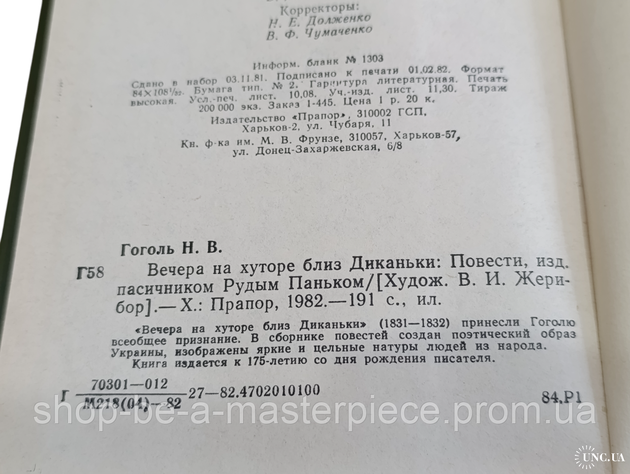 Гоголь Н. В. Вечера на хуторе близ Диканьки: Повести, изд. пасичником Рудым Паньком/[Худож. В. И. Жерибор]. - Х.: Прапор, 1982. — 191 с., ил.