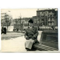 Харьков женщина в шляпке у Центрального универмага, трамвай 9х12 см площадь Розы Люксембург