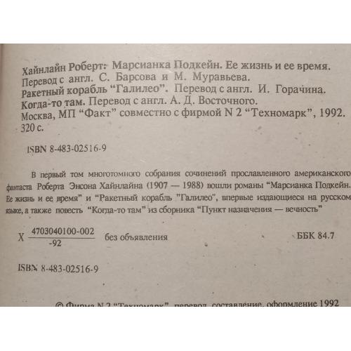 Хайнлайн. Собрание сочинений STELLA. Том 1. Марсианка Подкейн. Ракетный корабль Галилео. Издательство: Техномарк. 1992 год. Отличное состояние.
