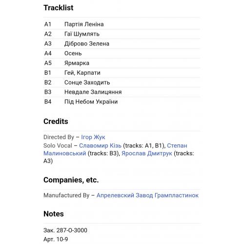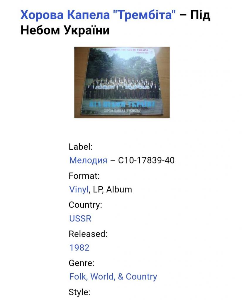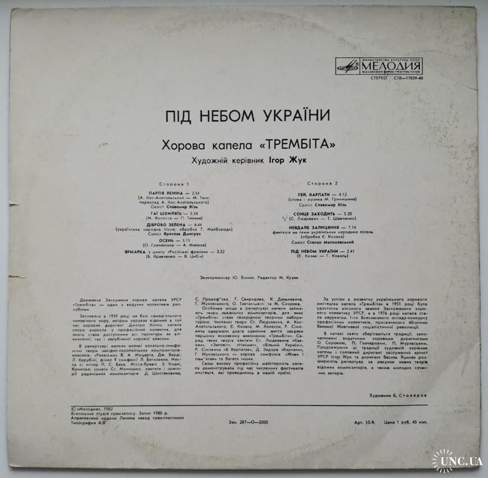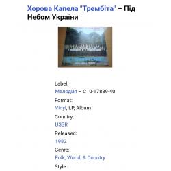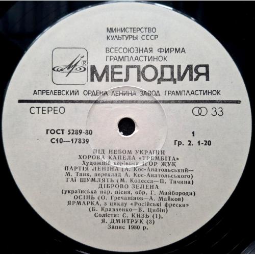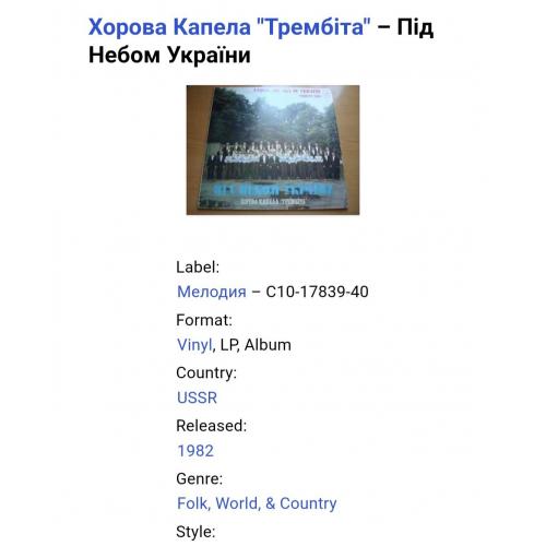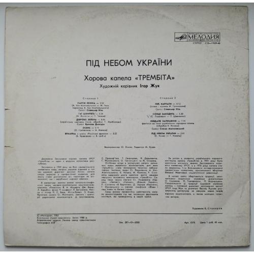 Вінілова платівка. Четвертий, в дискографії, студійний альбом, Української, Державної, Заслуженої, Хорової Капели, Трембіта, яка була заснована у Львові диригентом Дмитром Котко (Під Небом України) 1980. Випуск фірми (Мелодія) СРСР, Апрелєвський завод грамплатівок, 1982-ий рік. Оригінальне, першопресове видання. Лімітований тираж (Limited Edition). Рідкісне (Rare). Стан платівки EX+. Стан конверту ЕХ. Відправка по Україні службами доставки: Нова Пошта, Укр Пошта, Делівері. Також відправляємо посилки за кордон по цілому світу.
