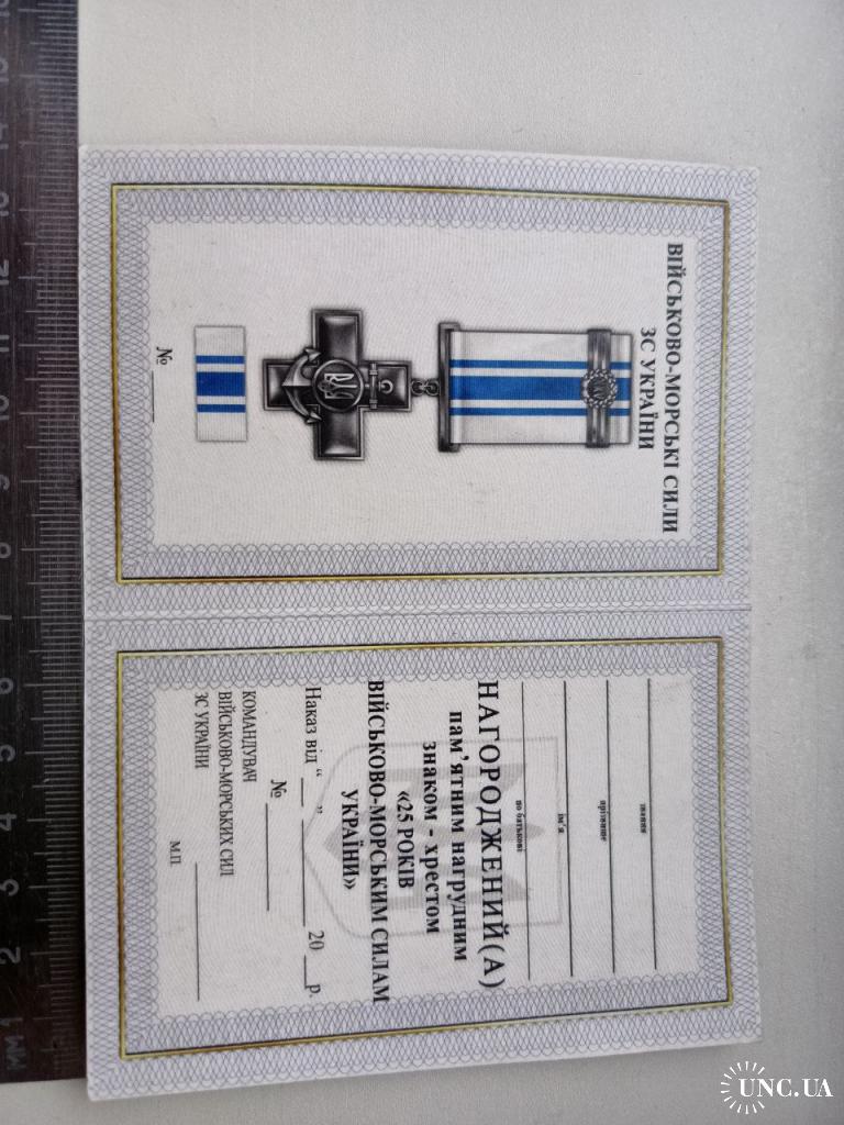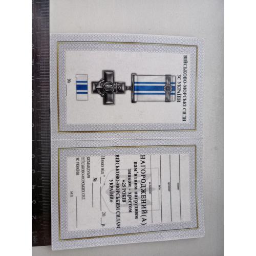 2021-....Хрест з посвідченням 25 РОКІВ ВІЙСЬКОВО МОРСЬКИХ СИЛ УКРАЇНИ