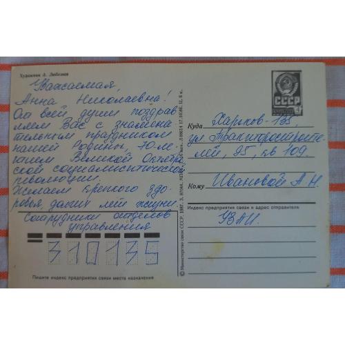 1981-2000Почтовая открыткас маркой. Минсвязи СССР. Т. 16 млн.Подписана. Без дефектов. Состояние отличное.