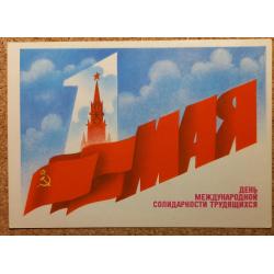 1981-2000Почтовая открытка с маркой. Изображены классические первомайские мотивы: Красное знамя, серп и молот башня Кремля. Минсвязи СССР. Т. 6 млн. Чистая. Без дефектов. Состояние отличное.