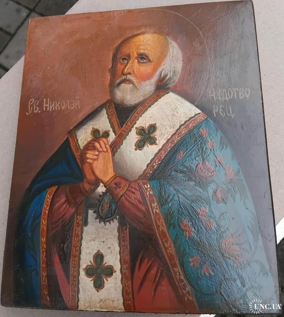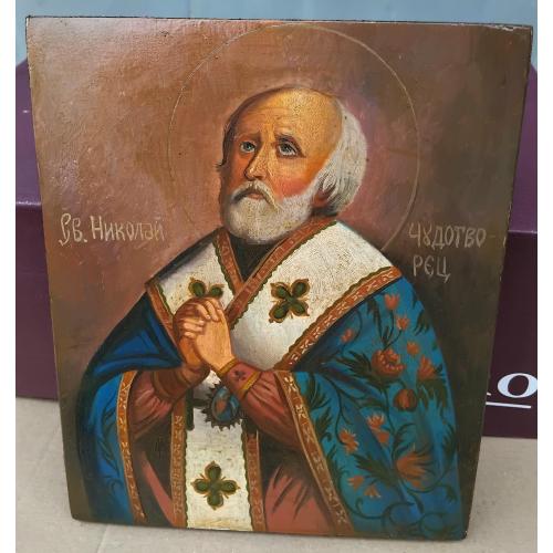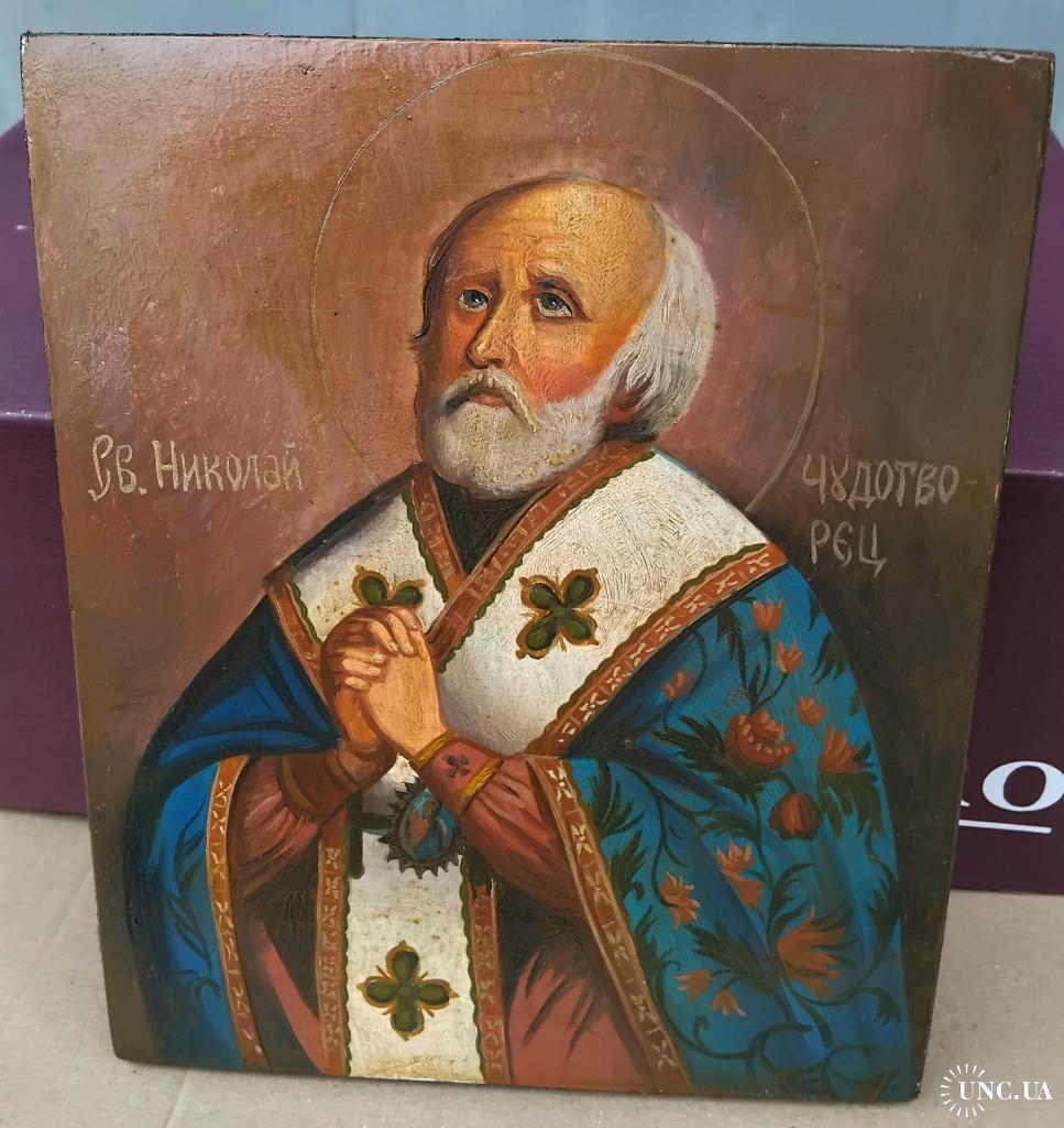 неизвестноИкона Св.Николай писаная маслом по дереву,состояние 'музейный сохран!'.Размер 22×18.Люкс!