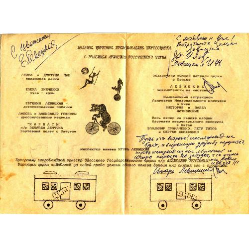 1981-2000Иллюзионист. Виктория и Павел Шатковские. Одесский цирк. 1994 г. Программа.