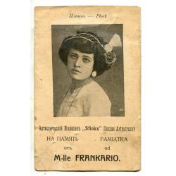 1901-1920Иллюзионисты. Артистический иллюзион "Sfinks". М-lle Frankario, Плоцк. Poland.