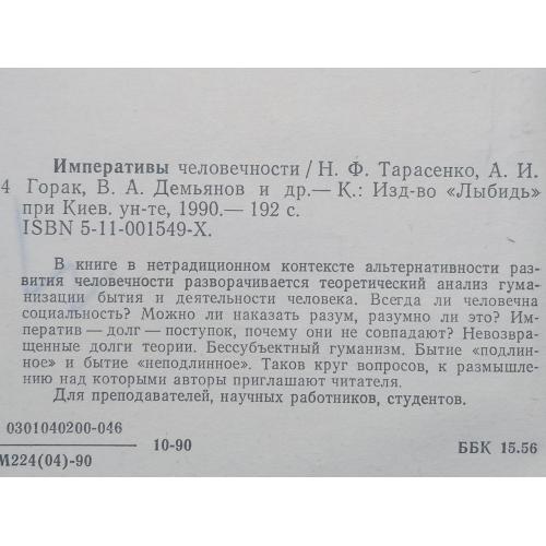 Императивы человечности. Лыбидь. 1990 год.