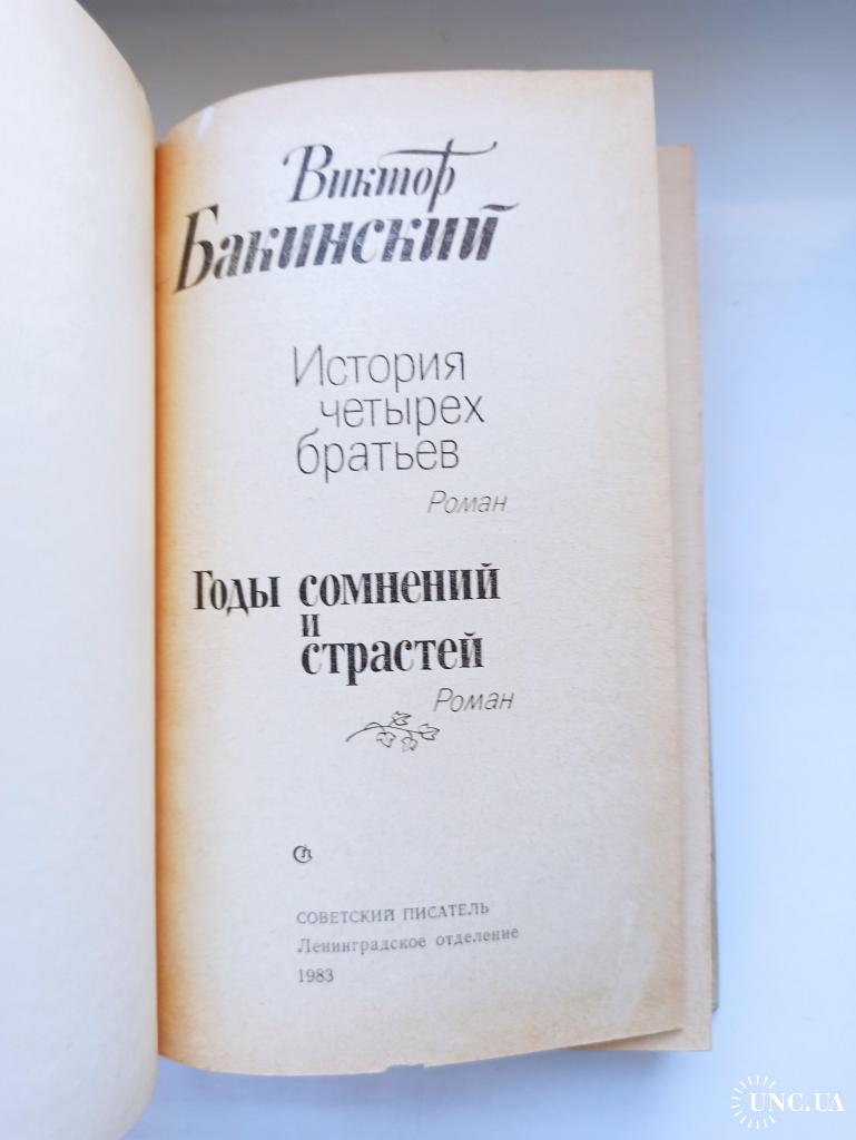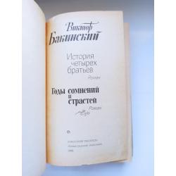 В книгу вошли два романа ленинградского прозаика В.Бакинского. «История четырех братьев» охватывает пятилетие с 1916 по 1921 год. Главная тема — становление личности четырех мальчиков из бедной пролетарской семьи в период революции и гражданской войны в Поволжье. Важный мотив этого произведения — история любви Ильи Гуляева и Верочки, дочери учителя. Роман «Годы сомнений и страстей» посвящен кавказскому периоду жизни Л.Н.Толстого (1851-1853 гг.). На Кавказе Толстой добивается зачисления на военную службу, принимает участие в зимних походах русской армии. В эти годы он создает повести «Детство» и «Отрочество», рассказы «Набег», «Записки маркера». Основываясь на письмах и дневниках Л.Н.Толстого, автор романа освещает идейные, эстетические и нравственные принципы, которые складываются у гениального писателя в это время. Определенное место отводит автор романа любви молодого Толстого к казачке Соломониде.