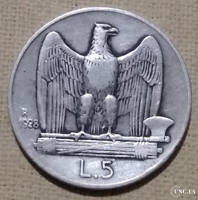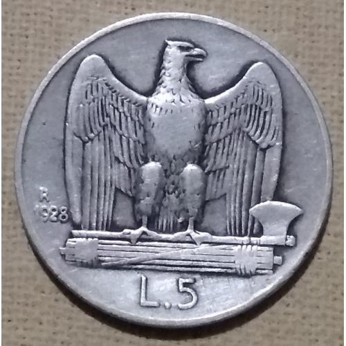 ОригиналИталия 5 лир, 1928 г, серебро