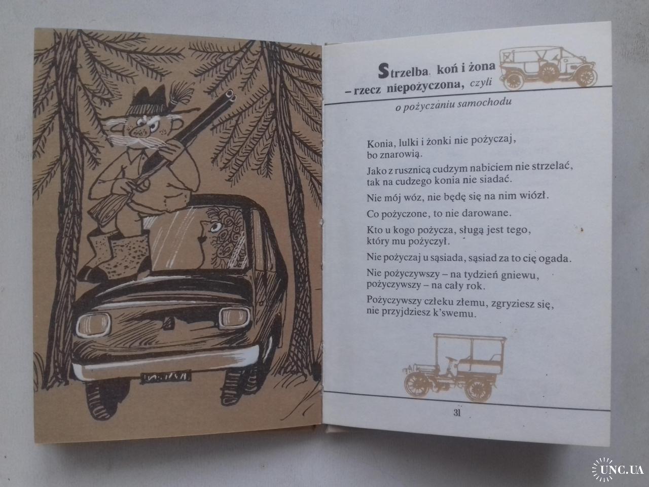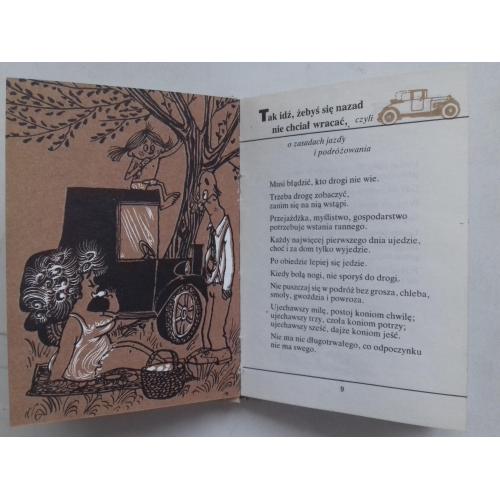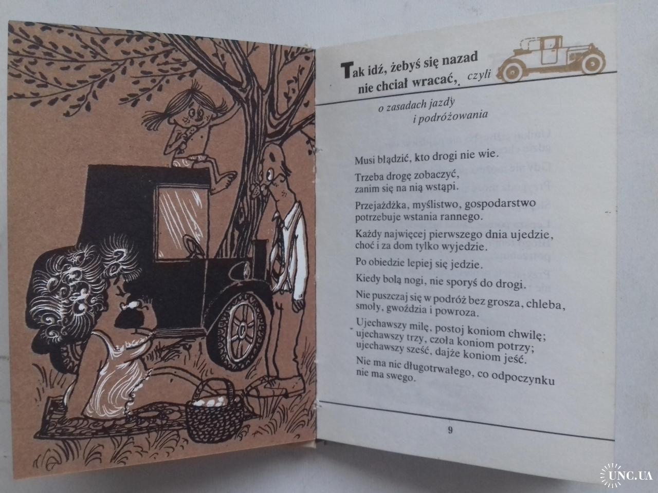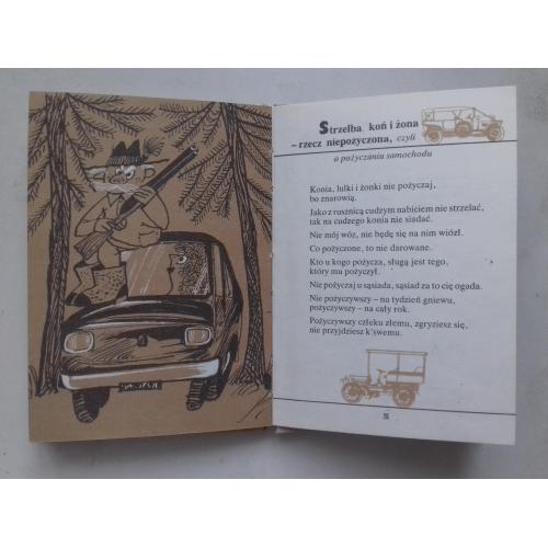 Добірка польських народних прислів'їв, пов'язаних з подорожами та керуванням автомобілем, опублікована у міні-форматі з ілюстраціями Мирослава Покори.