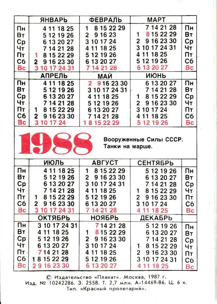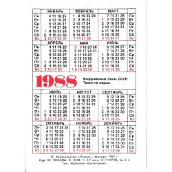 1981-2000Календарик 1988 Танки на марше.