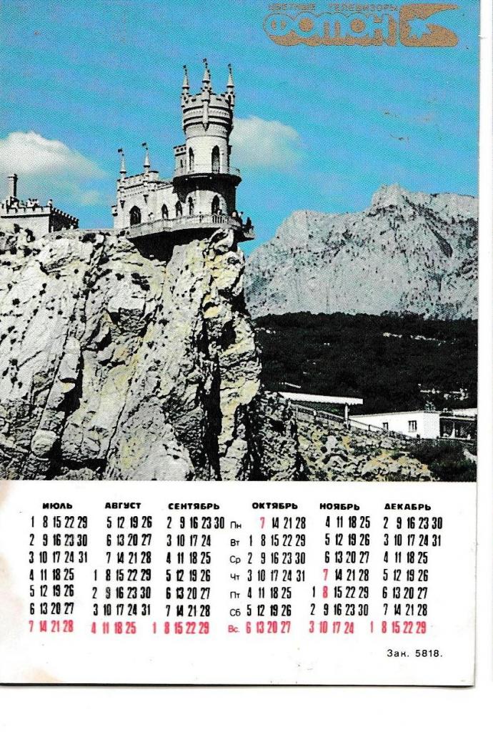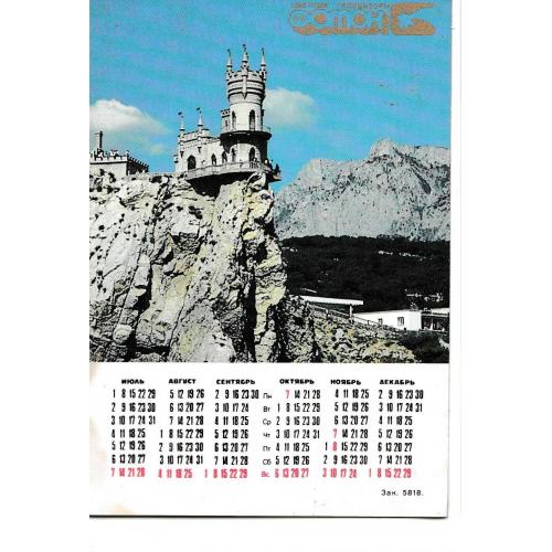 1981-2000Календарик 1991 Леонид Каневский, Ласточкино гнездо, кино, Крым, двусторонний.