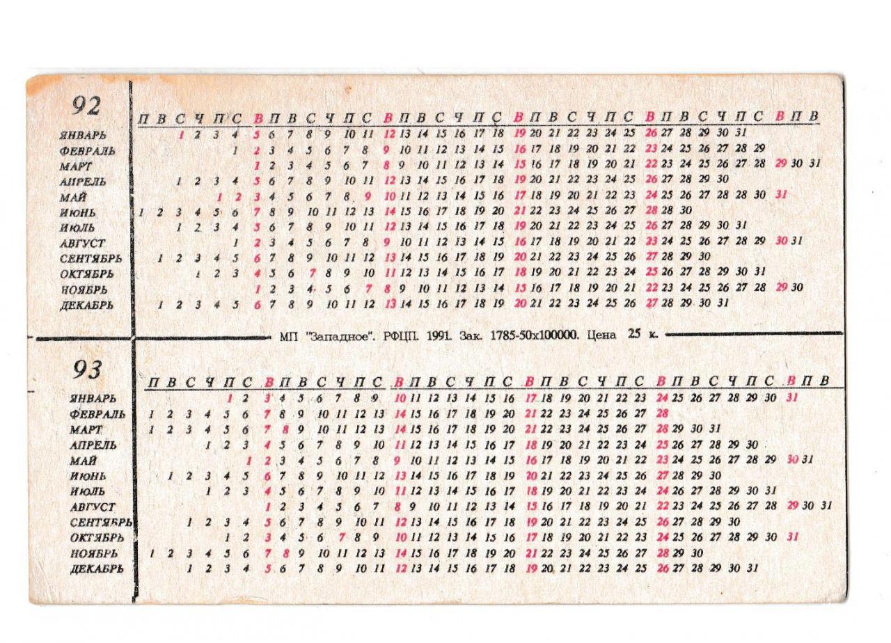 1981-2000Календарик 1992 1993 Авто, Ford Scorpio.