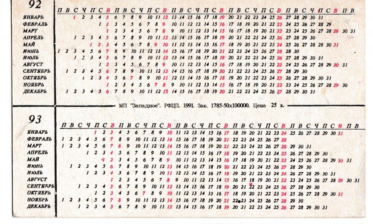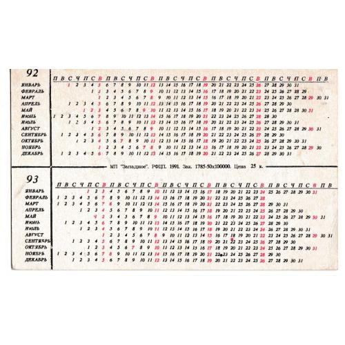 1981-2000Календарик 1992 1993 Авто, Suzuki Vitara.