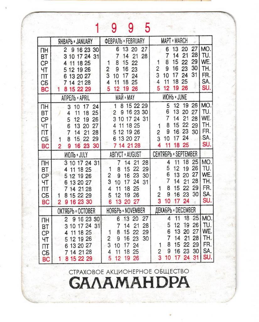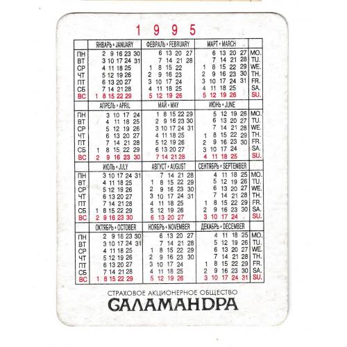 1981-2000Календарик 1995 Саламандра, финансовая пирамида, РАРИТЕТ.
