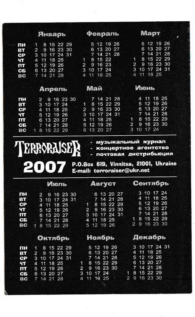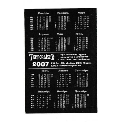 2001-2020Календарик 2007 Rage, Heavy Metal, Terroraiser.